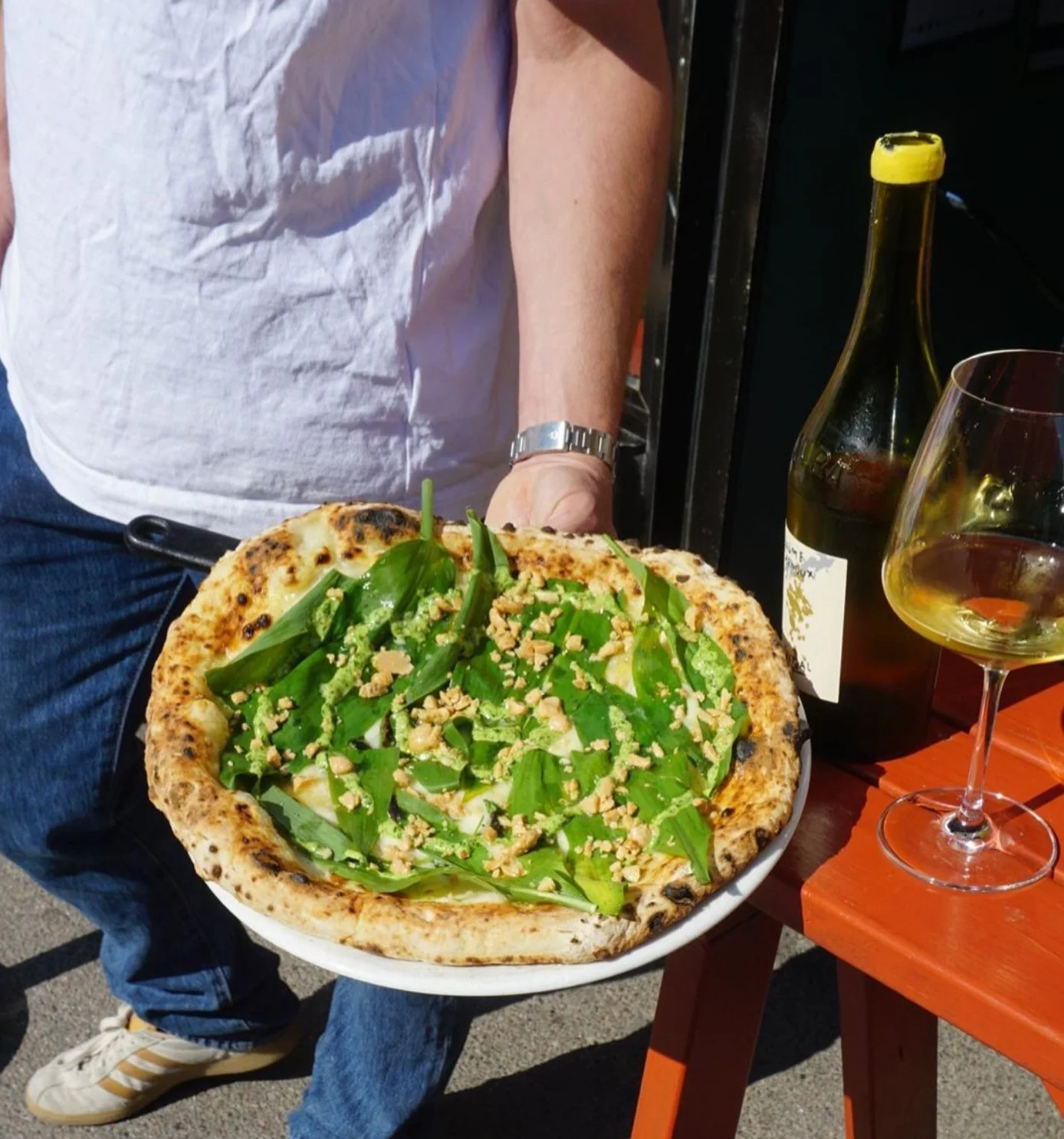 Stenugnsbakad Napolitansk pizza och deli i dejtvänlig miljö